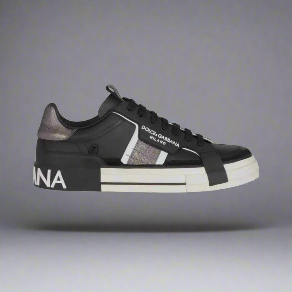Elevate your style with these Dolce & Gabbana black and white sneakers, featuring bold branding and a sleek design. Perfect for any occasion, these sneakers combine luxury with modern fashion.